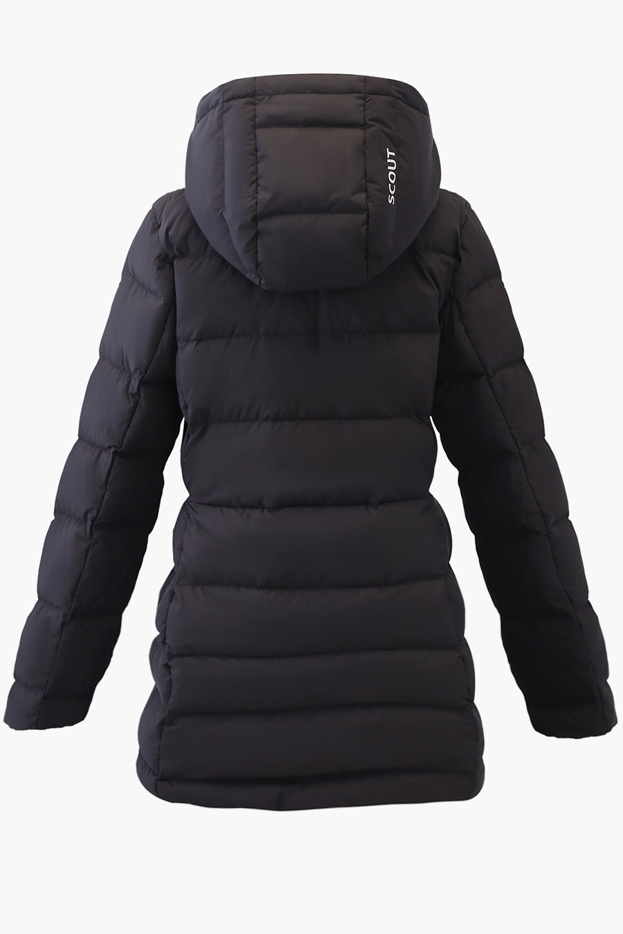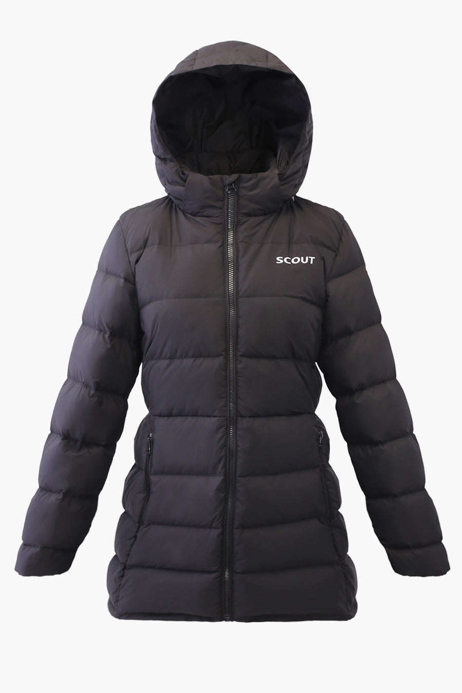 Scout's Valerie Puffy Down Coat is an urban style, ultra warm, premium 600-fill down coat with a removable, deep hood, premium YKK zippers and side zip pockets. Stay warm and cozy all winter long with this premium puffy down coat that will keep kids warm through any kind of inhospitable weather. Additional features include front closure with full zip, full and deep hood, chin guard. Length is an active length and falls to mid-quadricep to allow for kids to run, skip and climb. 100% ripstop polyester shell with baffled, quilted lining, 90/10 premium 600-fill down.
